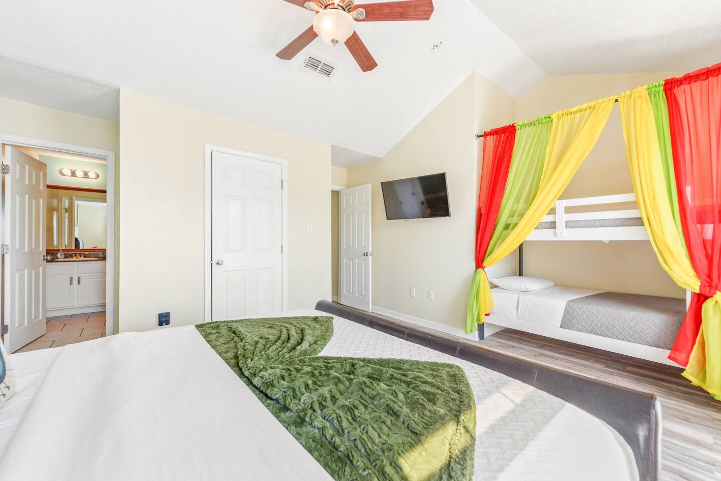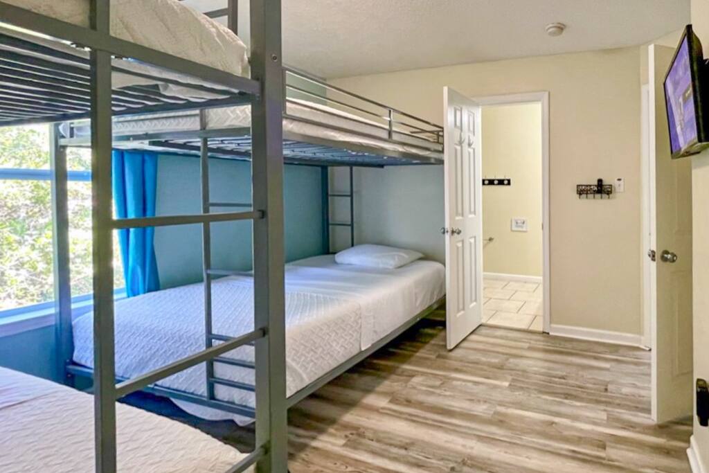 Welcome to our newly remodeled townhouse in Gulfport, Mississippi, where you'll experience exceptional customer service from experienced SUPERHOSTS! Our collection of awesome reviews from our guests speaks for itself. Our 3-bedroom, 3-bathroom home is just one block away from the beach and features a large private enclosed patio deck with a fenced and COVERED patio with 2 egg chair swings, BBQ grill, and table and chairs. You'll find stainless steel appliances in our fully equipped kitchen, along with a stacked washer and dryer for your convenience. Upstairs, the first bedroom comfortably sleeps 4-6 with TWIN-over-TWIN and TWIN-over-FULL size bunk beds, a 28-inch flat screen Smart TV, a large closet, and a private full bathroom. The second bedroom has a KING size bed, a 40-inch flat screen Smart TV, a walk-in closet, and a private full bathroom. Downstairs, the third bedroom has a QUEEN bed, a 32-inch flat screen Smart TV, and a doorway to the patio deck. Free Wi-Fi is available throughout the house, and all of our Smart TVs offer access to your own Netflix and Hulu accounts. For your comfort and convenience, we provide a beach wagon and chairs, as well as other amenities. Our gated complex offers a shared outdoor swimming pool, and we have 8 identical townhouses available for large family gatherings. We can't wait to welcome you to our stunning townhouse in Gulfport! Please contact owner Kim for more information.
