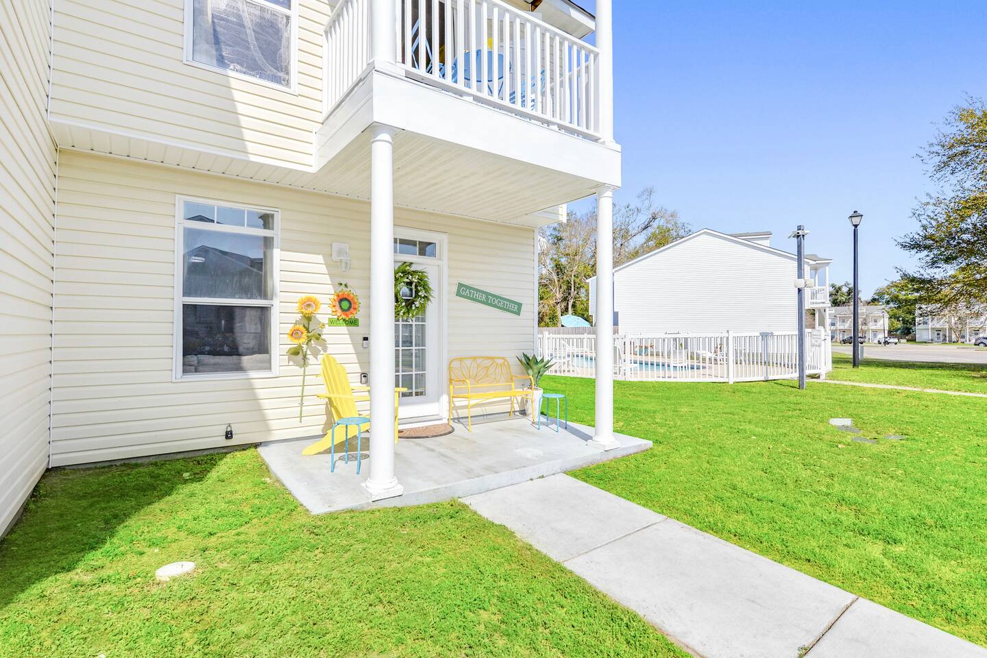 Escape to our newly remodeled townhouse, just a 5-minute walk away from the beach! Our 3-bedroom, 3-bathroom home features a unique private COVERED patio deck with 2 egg chair swings, with Smart TVs in each room, beach essentials, and a BBQ grill. We are also the #1 closest townhouse to the community swimming pool, perfect for a refreshing swim. Book now and enjoy a peaceful beach getaway at our beautiful townhouse! Note: We have a strict no pets policy due to server health allergies