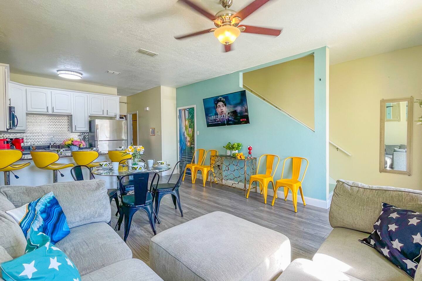As our guest, you’ll enjoy exclusive access to the townhouse, including the private enclosed backyard — perfect for relaxing or entertaining. Please note that the owner’s closet located in the downstairs bathroom and the balcony in the main bedroom are secured and not accessible to guests. You’re also welcome to enjoy the shared community swimming pool, conveniently located just a few steps from the townhouse. For parking, there are designated spaces in front of the townhouse, though they are not monitored or guaranteed. In addition, the gated complex offers plenty of open, free parking spaces throughout the area for your convenience. Please note that trailers are not permitted within the complex.