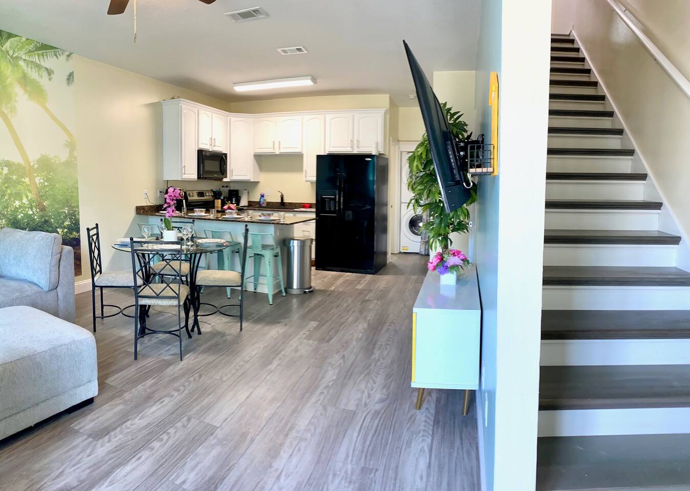 CHECK-OUT TIME: Unfortunately, it is difficult to extend checkout time past 10AM. Just like hotels, we have new guests checking in after you. And the cleaning crew needs a few hours to get the entire townhouse ready. LATE CHECK-OUT FEES: Please note, our cleaning service charges us per hour ($50) and they shows up around 10AM. If you are late for any reasons and the cleaning service is waiting outside for you to check-out, each partial hour late will be charged $50 and we will be deducted from your deposit. Thanks for your understanding. NO Parties: ABSOLUTELY NO parties or events are allowed at house. Only the number of people listed at time of the reservation are allowed to stay in the house. If any party occur at the house, the authorities will be call to escort guests from the properties, damages $ will be charged and all monies will be forfeited. NO smoking indoors: There is a strict NO SMOKING indoors policy. To include vaping/illegal substances. In the event that house is smoked in, there will be an automatic $500 cleaning & deodorization fee applied. TV/Internet: All TVs are smart TCL TVs. The TV is managed by one Roku remote. There will be a $50 fine for each lost remote. DEPARTURE: Upon departure, please ensure the following: * PLEASE LEAVE ALL SHEETS, COMFORTERS, BLANKETS, AND PILLOWS ON THE BEDS. The cleaner will take care of these * That's it !! Have a nice day.