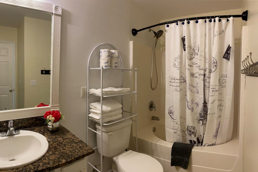 As our guests, you'll have exclusive access to the entire townhouse, including the enclosed backyard for your relaxation and entertainment. Please note that the owner's closet in the downstairs bathroom and the balcony in the main bedroom are locked and not accessible to guests. We invite you to take advantage of the shared complex swimming pool, just a few steps from the front of our townhouse. For your convenience, we have reserved two designated car parking spaces just in front of the townhouse. In the event of any visitors during your stay, they can use the marked "GUEST" parking spaces near the pool. Please note that trailer parking is not permitted in the complex.