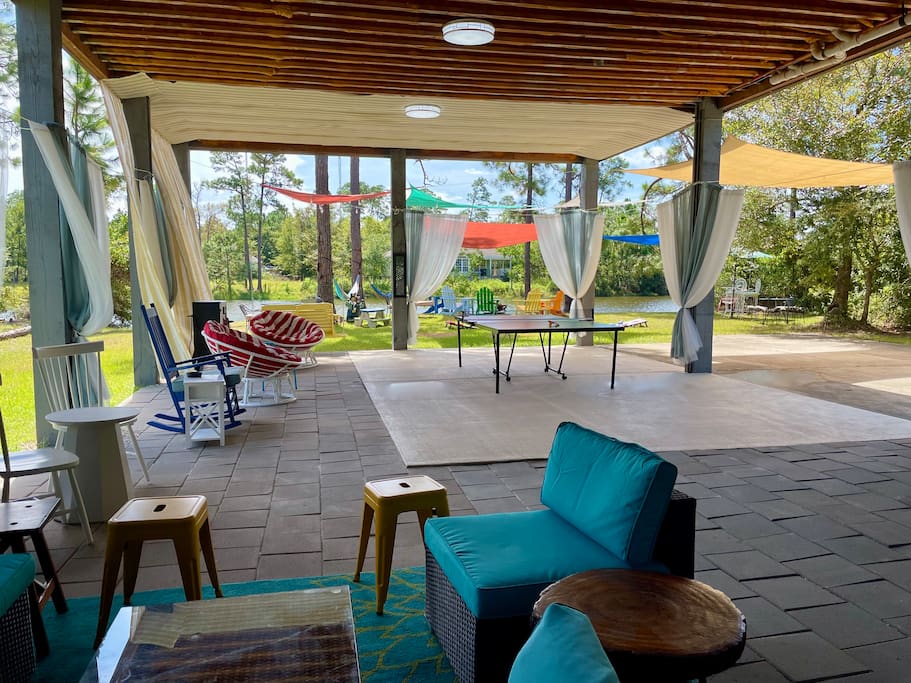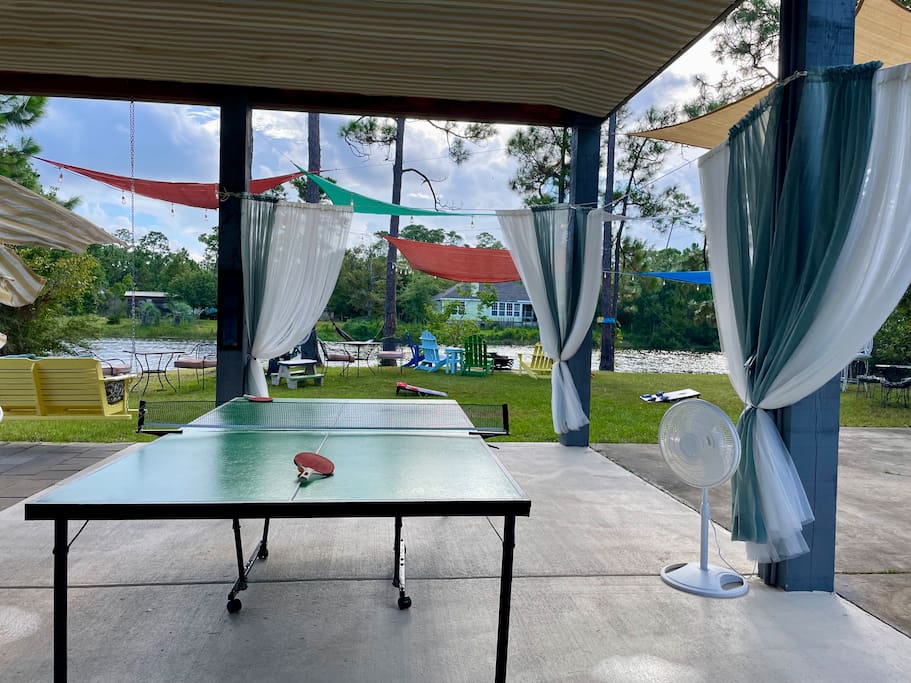 Welcome to our vibrant and eclectic lakefront Airbnb, where art and comfort come together to create a one-of-a-kind vacation experience. Our charming lake house is the perfect retreat for travelers seeking a creative and colorful getaway. Step inside and you'll be welcomed by a lively decor that reflects our passion for art and design. Our three beautifully furnished bedrooms offer plush bedding and flat-screen smart TVs for a restful night's sleep. The main bedroom features a stunning view of the lake and an ensuite bathroom for your convenience. The living room and dining area are designed for relaxation and entertainment, with comfortable seating and plenty of natural light. Our fully equipped kitchen has everything you need to prepare delicious meals, including a coffee maker and a toaster. For entertainment, head over to our large game room, which boasts a ping pong table, and plenty of seating, including hammocks for lounging. Outside, our colorful fire pit is perfect for cozy evenings under the stars. Your safety and privacy are important to us, and we have exterior cameras surrounding the property to ensure your security. However, we respect your privacy and do not have any cameras inside. As experienced superhosts, we're committed to providing exceptional customer service and making sure our guests have an unforgettable stay. So come and experience an artist's paradise by the lake and beach - book with us today!